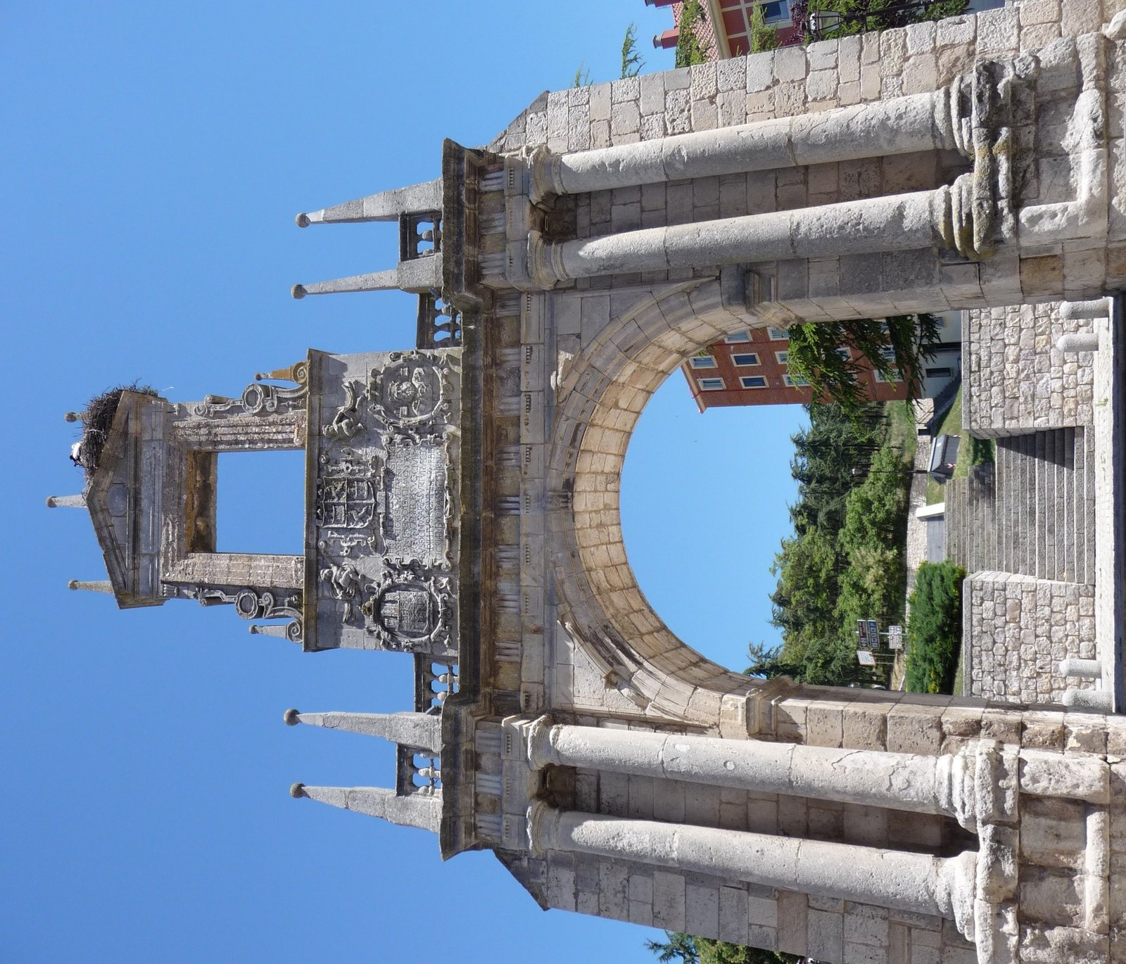 El monumento refleja la severidad herreriana. El cuerpo es de un arco de medio punto sobre una imposta sencilla, escoltado por dobles columnas de orden dórico. Dos obeliscos cierran a los flancos el cuerpo central, en el que dos genios sostienen las armas de Castilla y León y Burgos.
