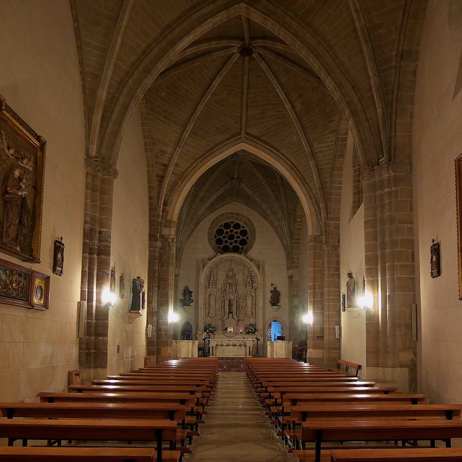 Conserva la iglesia un retablo neogótico de alabastro.