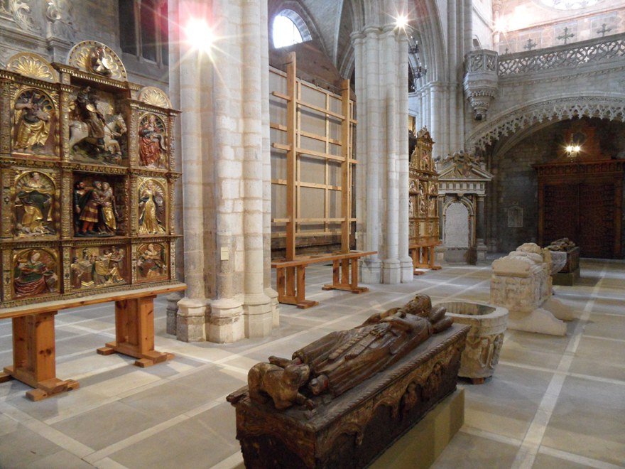 En el coro de la iglesia, se exhiben importantes piezas de orfebrería, fundamentalmente cruces (siglos X-XVIII), cálices (siglos XV-XVIII) y píxides (siglo XV), todo ello presidido por un magnífico tríptico flamenco del siglo XVI obra de Ambrosius Benson procedente de la iglesia de San Cosme y San Damián de la capital burgalesa.